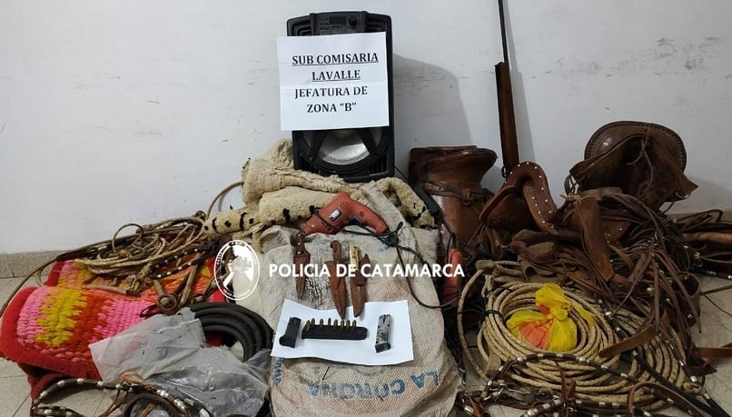 Asimismo, en el lugar, procedieron al secuestro de aperos, riendas, sobrepelos, un rifle de aire comprimido, alambres, amoladoras, taladros, entre otros elementos que serian producto de ilícitos denunciados en esa jurisdicción, por lo que quedaron a disposición de la Fiscalía de Instrucción en turno, desde donde se impartieron las medidas a seguir.