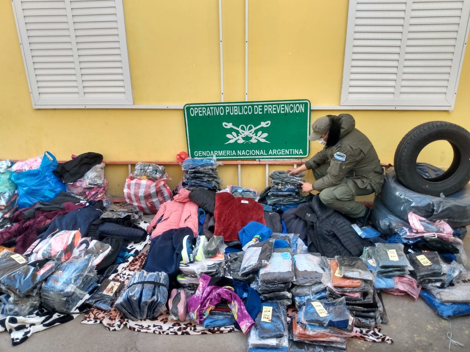 Ayer efectivos del Escuadrón Núcleo “Catamarca” dependiente de la Agrupación VIII a la altura del kilómetro 940 de la Ruta Nacional N° 60, controlaron un colectivo. Al momento de registrar el sector de la bodega, los funcionarios observaron que había varias bolsas que contenían mercadería (calzado, abrigos, entre otros elementos de tienda) y cubiertas de origen extranjero sin la correspondiente documentación legal.