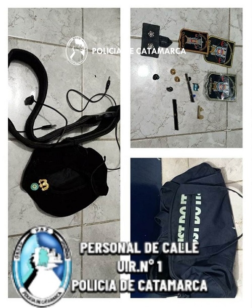 Cabe señalar, que en ese momento los uniformados lograron divisar entre sus pertenencias un bolso azul, que en su interior contenía un cinto táctico, una boina, una jineta, tres escudos bordados, tres insignias de antigüedad y un pin de la Bandera Nacional, de los cuales no pudo acreditar la procedencia.