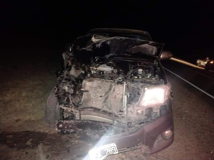 En cercanías a una empresa olivícola, una camioneta Toyota Hilux, conducida por Osvaldo Simes no pudo evitar colisionar con un equino con marca de fuego DP77.