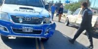 En ese lugar, el conductor de la motocicleta quiso evadir a los policías, pero perdió el control del rodado y terminó impactando contra la Unidad Móvil, cayendo ambos al piso.