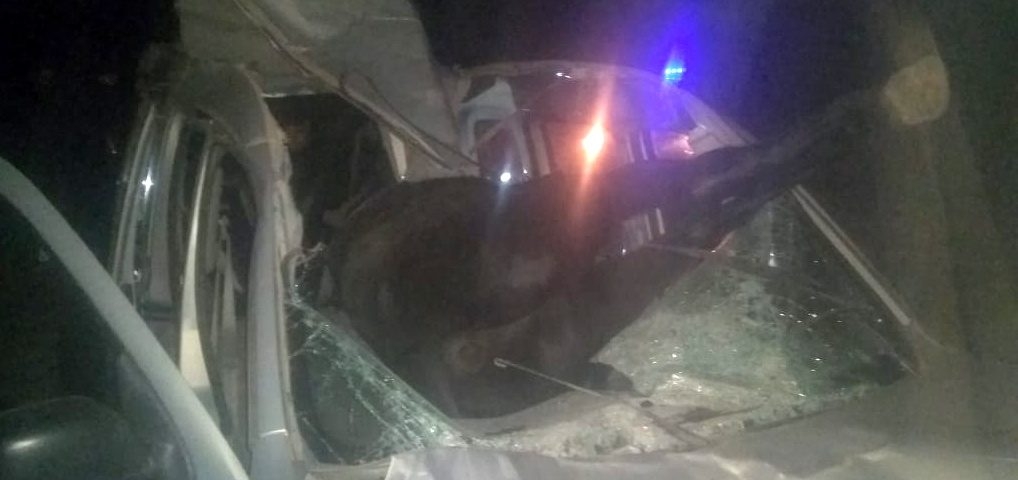 A raíz del impacto, el animal terminó en el interior del rodado.