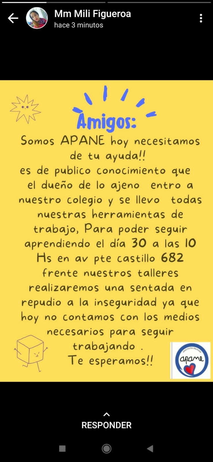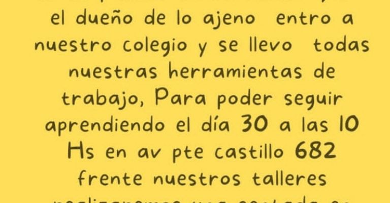 Los directivos, personal de la escuela y familiares de los alumnos, realizarán éste martes una sentada en repudio al robo que sufrieron y a la inseguridad. La convocatoria es para este lunes 30 a las 10 hs en Avenida Presidente Castillo 682.