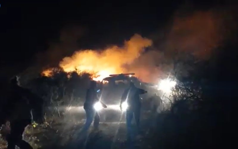 En el lugar trabaja personal de los Bomberos Voluntarios de Valle Viejo y de Fray Mamerto Esquiú. Debido al importante frente de fuego también colabora personal de la Guardia Urbana de este último departamento.
