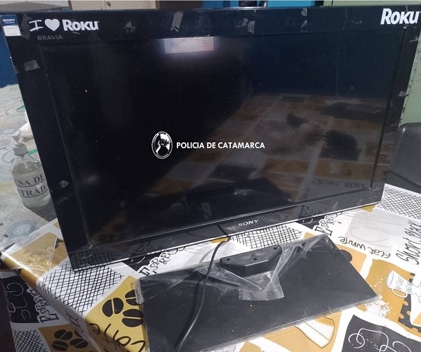 Hoy miércoles, a las 11:45, en la esquina de las calles Alpatauca y Llastay, fue aprehendido un joven de apellido Rubio (23), quien fue sorprendido llevando un televisor de marca Sony, de color negro, del cual no pudo acreditar su legítima propiedad y procedencia.