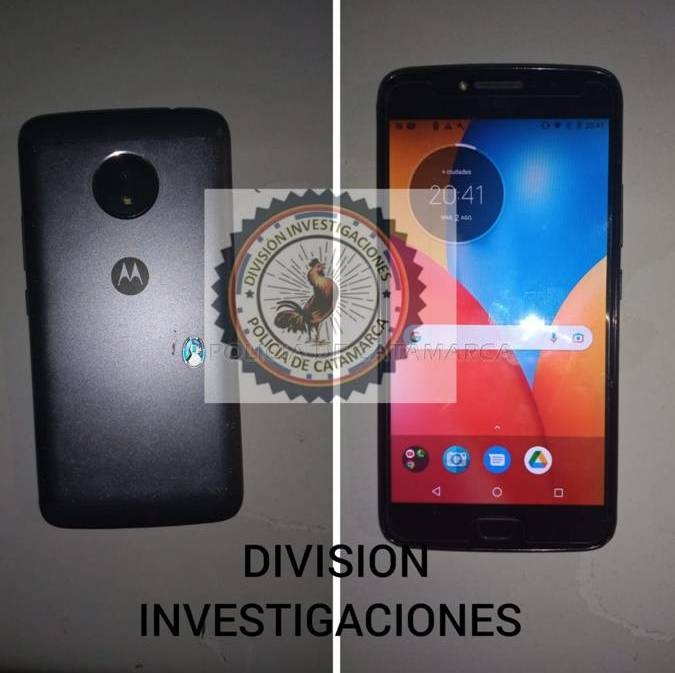 A raíz de averiguaciones practicadas por efectivos de la División Investigaciones de la Policía de la Provincia conjuntamente con sumariantes del Precinto Judicial N°2, y teniendo en cuenta la información aportada por la damnificada, materializaron un registro domiciliario en la calle N° 24 del Barrio Valle Chico, y procedieron al secuestro de un teléfono celular Motorola E4 Plus, de color negro.