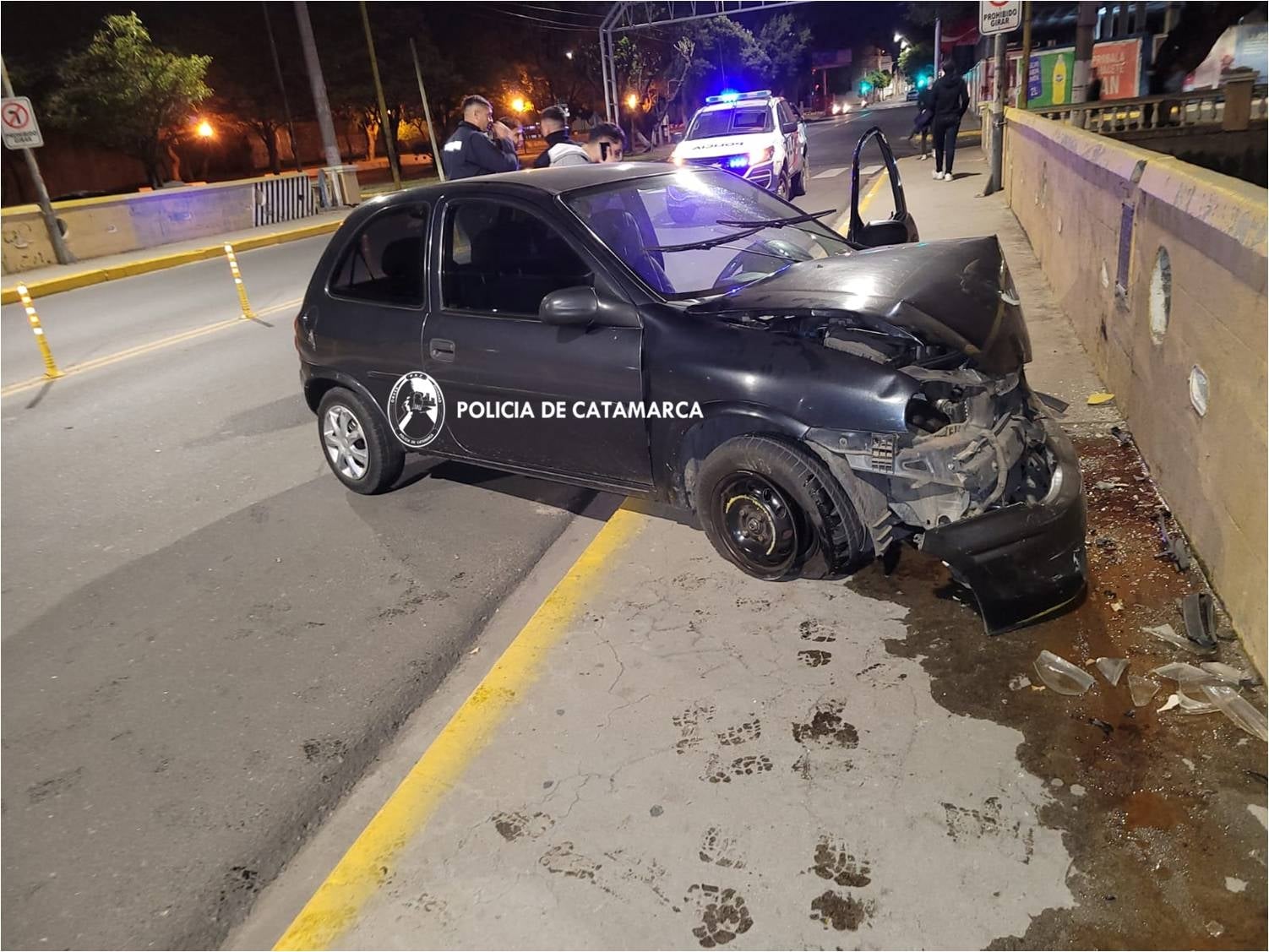 En el lugar, un automóvil Chevrolet Corsa, dominio GLS-092, de color gris oscuro, al mando de Facundo Sampayo (21), por causas que se tratan de establecer chocó contra el murallón de dicho puente.