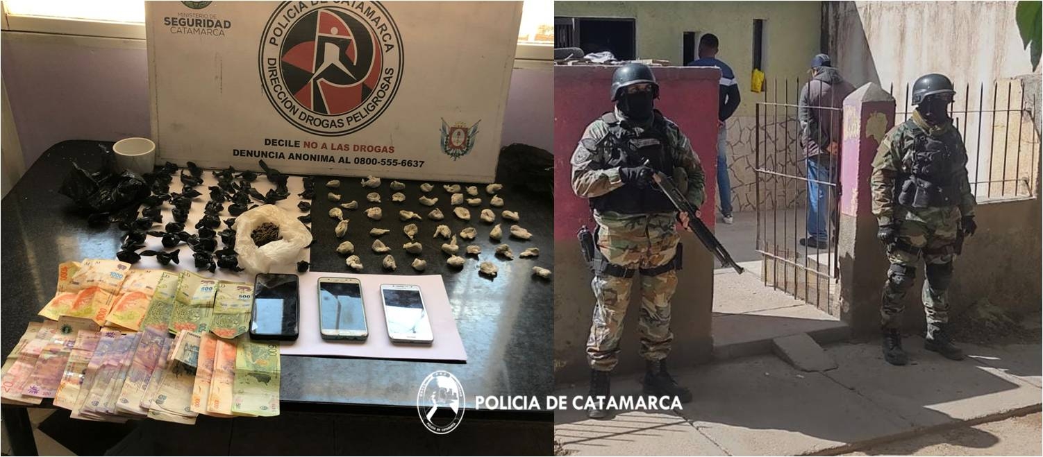 Luego de irrumpir en dos viviendas, una de ellas ubicado en el barrio 10 viviendas, propiedad de la familia Leiva y otra en inmediaciones del barrio Santa Rosa, donde reside la familia Cervantes; los policías procedieron al secuestro de (105) ciento cinco dosis de marihuana fraccionadas y listas para su comercialización, la suma de ($ 20.420) veinte mil cuatrocientos veinte pesos en efectivo, una (01) balanza de precisión, cinco (05) teléfono celulares y cinco (05) plantas de marihuana de distintos tamaños.