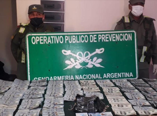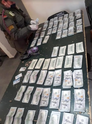 Al momento de la requisa, los uniformados detectaron un compartimento debajo de la alfombra del lado del acompañante, en el interior había tres paquetes con dinero en efectivo.