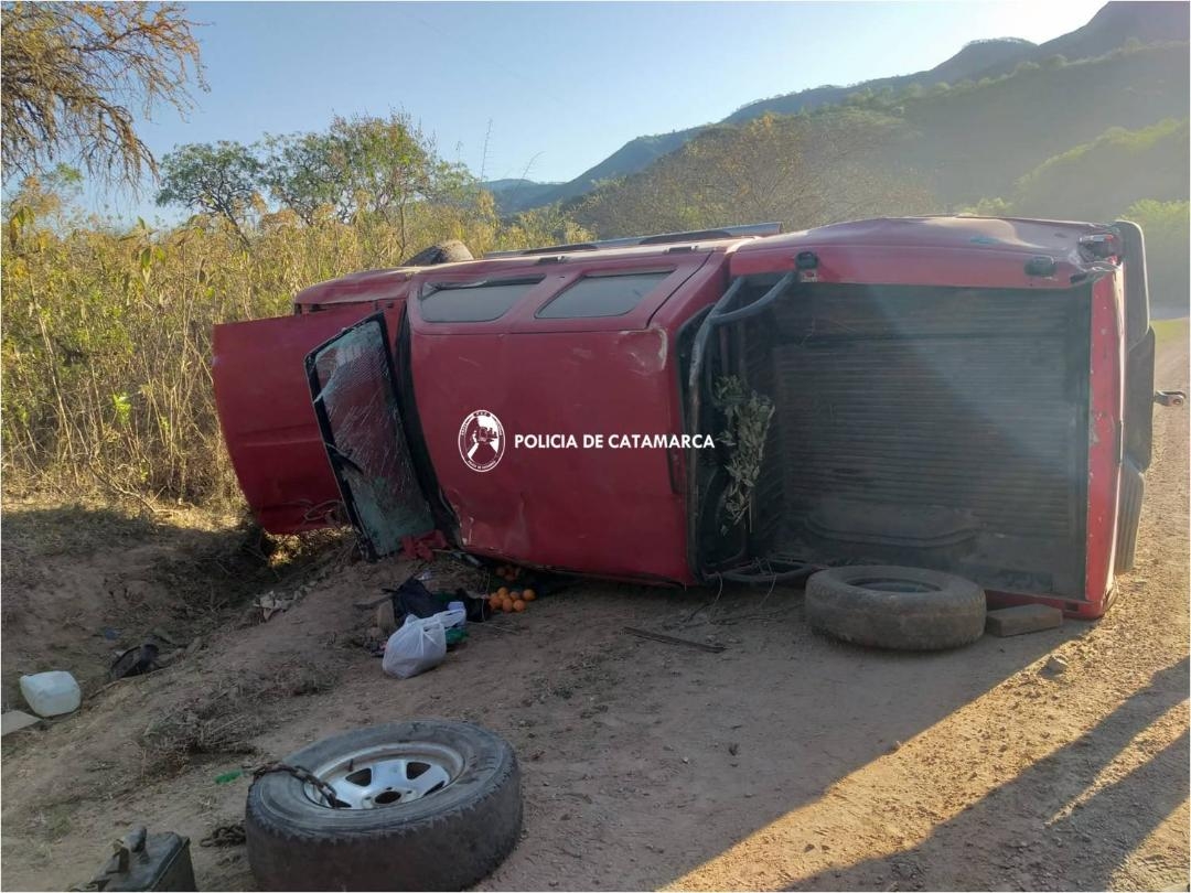 En la mañana de hoy, a las 07:50, se produjo un accidente vial protagonizado por una camioneta Ford Ranger, dominio EWE-468, de color rojo, al mando de Carlos Manuel Moza (82), por causas que se tratan de establecer perdió el control del rodado y termino volcando.