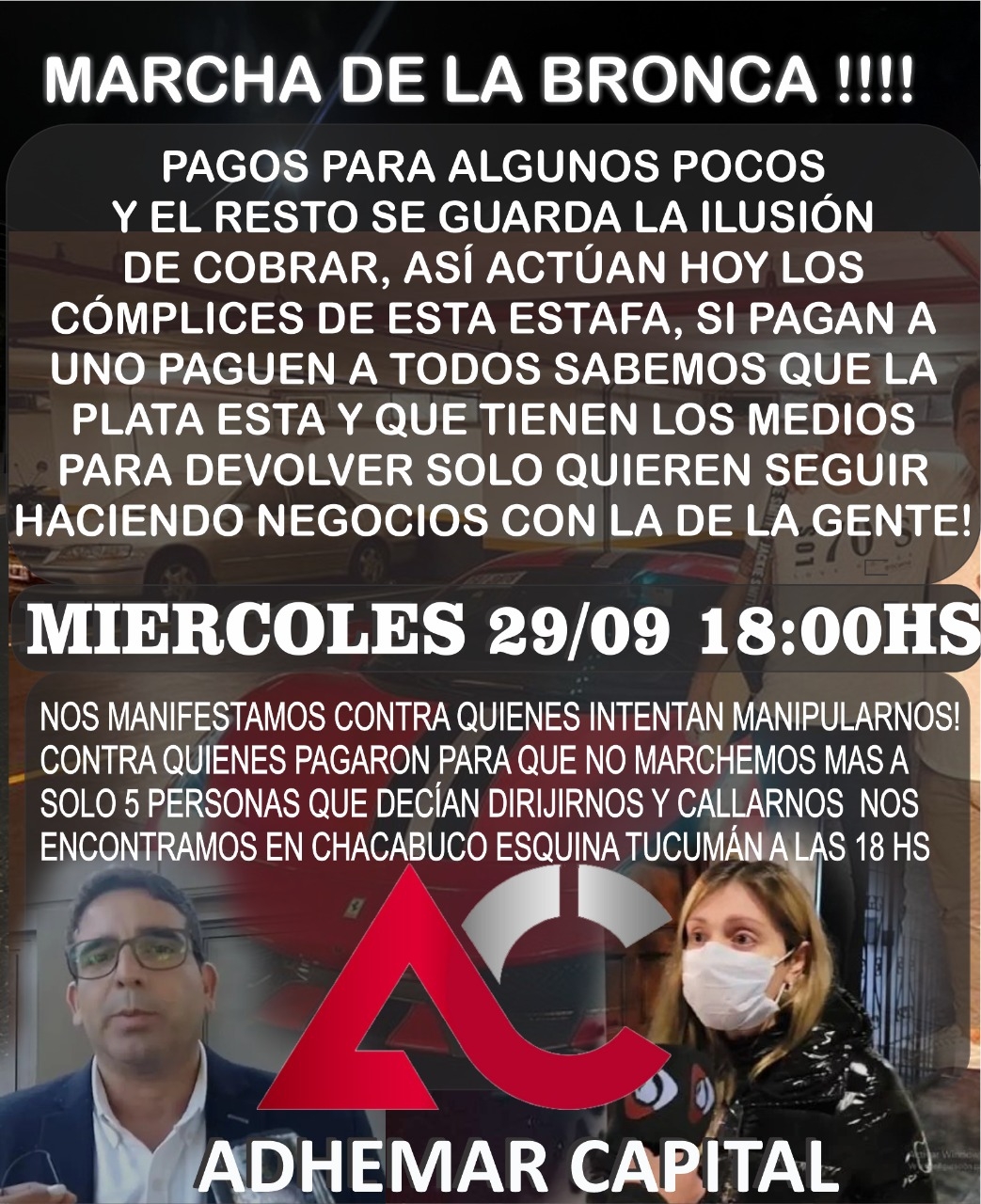 Según manifestaron están cansados de los manoseos, dilaciones y tretas que llevan a cabo esta pareja, que, según afirman existen pruebas, audios y comprobantes de pagos, están haciendo devoluciones discrecionales y comisionando y mientras el grueso de la gente espera por una respuesta de la justicia Bacchiani, desde la cárcel, mantiene largas conversaciones telefónicas con algunas de las personas que asisten a la marcha.