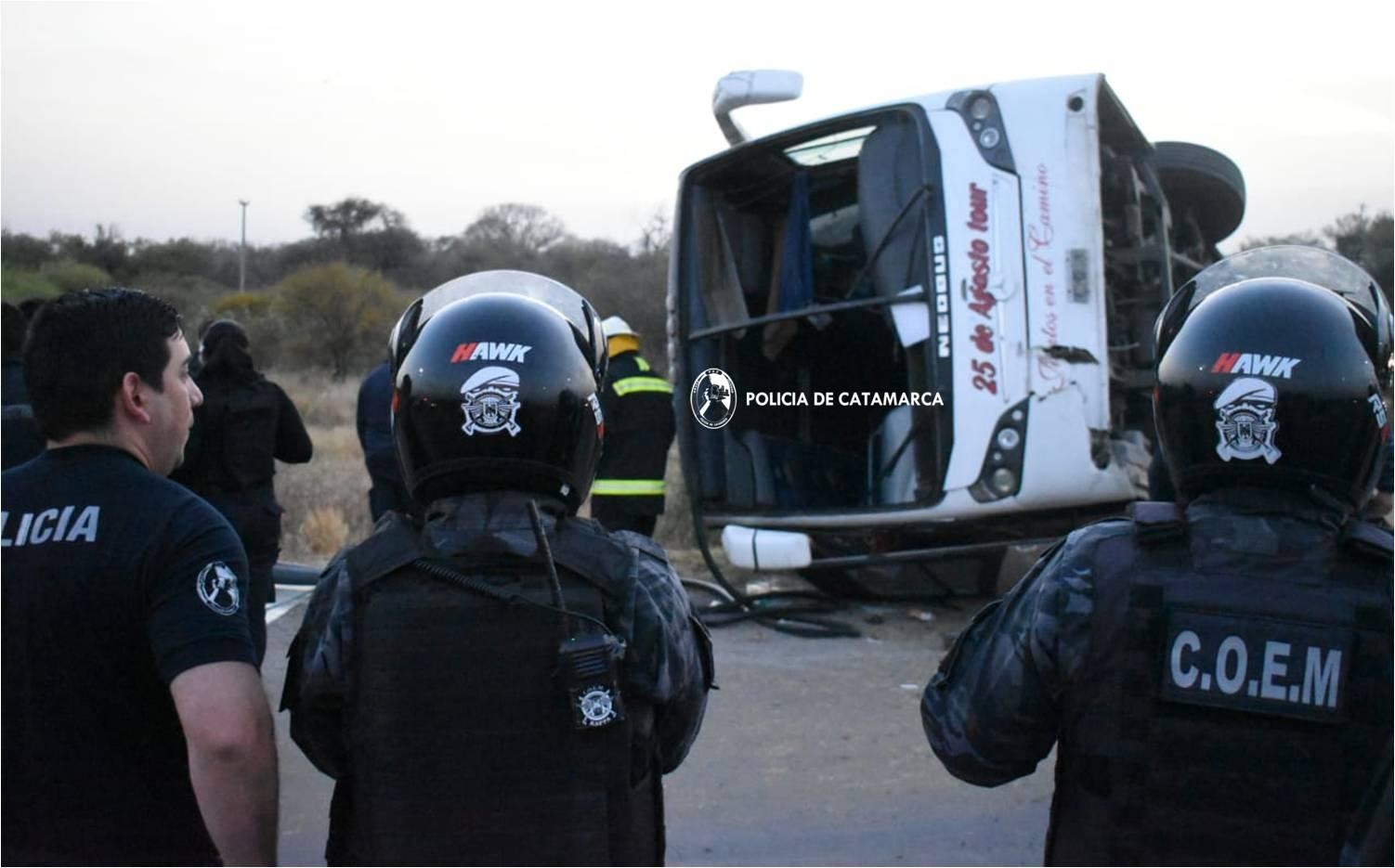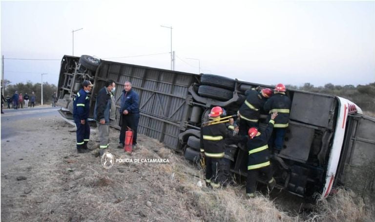 En el lugar del accidente se hizo presente el jefe de la policía de Catamarca, Angel Aguero, quien confirmó que el colectivo había salido a las 3.30 horas desde Andalgalá. Además, informó que no se registraron víctimas fatales y que fueron 16 las personas trasladadas al hospital con politraumatismos de distinto tipo.