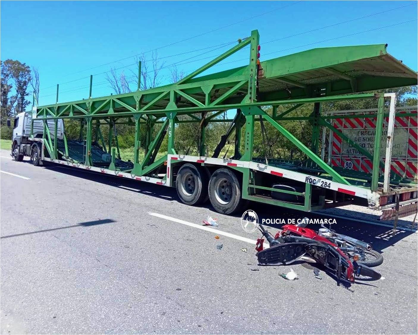 Diego Roberto Aranda (43), circulaba en una motocicleta Motomel DLX roja 110 cc., y por motivos que se investigan colisionó con un automóvil Renault Clío, dominio IEQ-230, de color negro, al mando de Leandro Agustín Moya Aguirre (19), para luego terminar impactando contra un camión Mercedes Benz, dominio NUQ-357, conducido por Carlos Orlando Ponce (57).