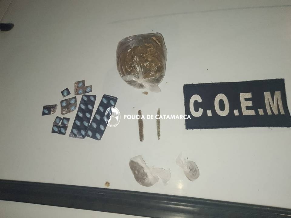 Pasada la medianoche de hoy, a las 00:10, mientras personal del Cuerpo de operaciones Especiales Motorizadas (COEM Kappa) realizaba recorridos de prevención e identificación de personas en inmediaciones a la avenida Alem, procedió a controlar un automóvil Renault Megane de color blanco, en el que circulaban cinco masculinos y tras realizarles la requisa correspondiente, entre las prendas de uno de los ocupantes encontraron envoltorios con una sustancia herbácea en su interior.