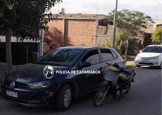 Ayer viernes, a las 18, en avenida 9 de Julio S/N°, de la Ciudad de Santa María, Romina del Valle Cancinos (30), que circulaba en una Motomel Blitz 110 cc. junto a una niña de 7 años, chocó contra la puerta de un VW Polo azul, conducido por Luis Esteban Ocampo (66), oriundo de Jujuy, cuando intentaba estacionar.