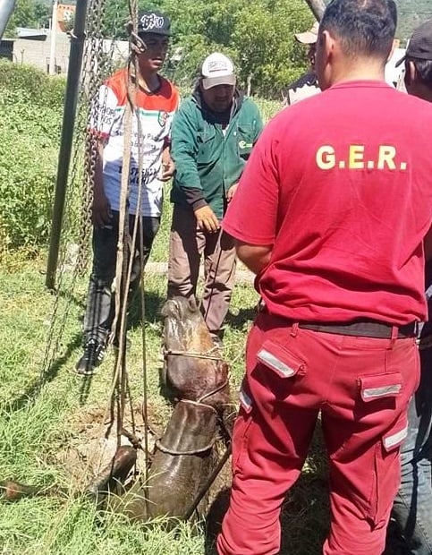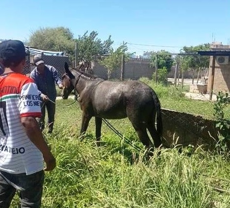 Hoy domingo, a las 10:40, mientras personal de la Seccional Octava realizaba recorridos preventivos por la esquina de las calles calle Monseñor Sueldo y Las Dalias, fue alertado por un hombre que un caballo había caído en una fosa séptica existente al fondo de un inmueble.