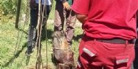 De inmediato, los policías solicitaron la colaboración de sus pares de la Dirección Bomberos de la Policía de la Provincia y del Grupo Especial de Rescate (GER), quienes tras realizar tareas de su especialidad lograron rescatar al animal.