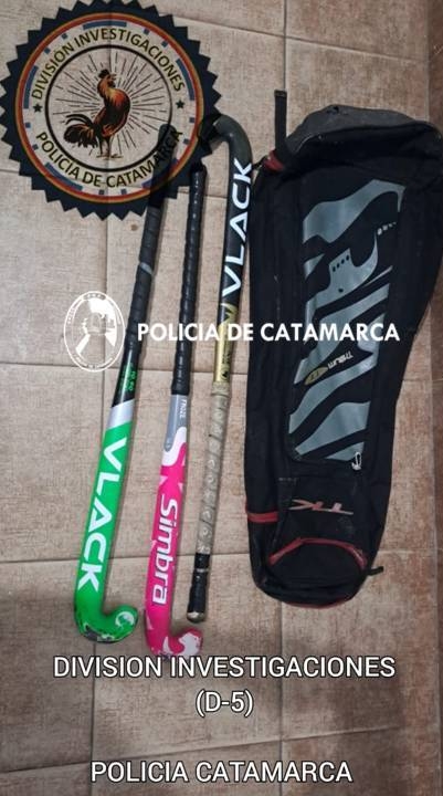 A raíz de una denuncia penal radicada en la Unidad Judicial N° 6, en la que una joven mujer de 18 años de edad manifestó que personas desconocidas le habrían sustraído un bolso de color negro, con palos de hockey del interior de un automóvil, que estaba estacionado en inmediaciones al barrio Ojo de Agua, tras realizar una minuciosa tarea investigativa, efectivos de la División Investigaciones de la Policía de la Provincia, conjuntamente con Sumariantes del Precinto Judicial N° 6, bajo las directivas de la Fiscalía de Instrucción en turno, materializaron un registro domiciliario en una vivienda ubicada en el Pasaje Luz María S/N° del barrio Pozo de Choya.
