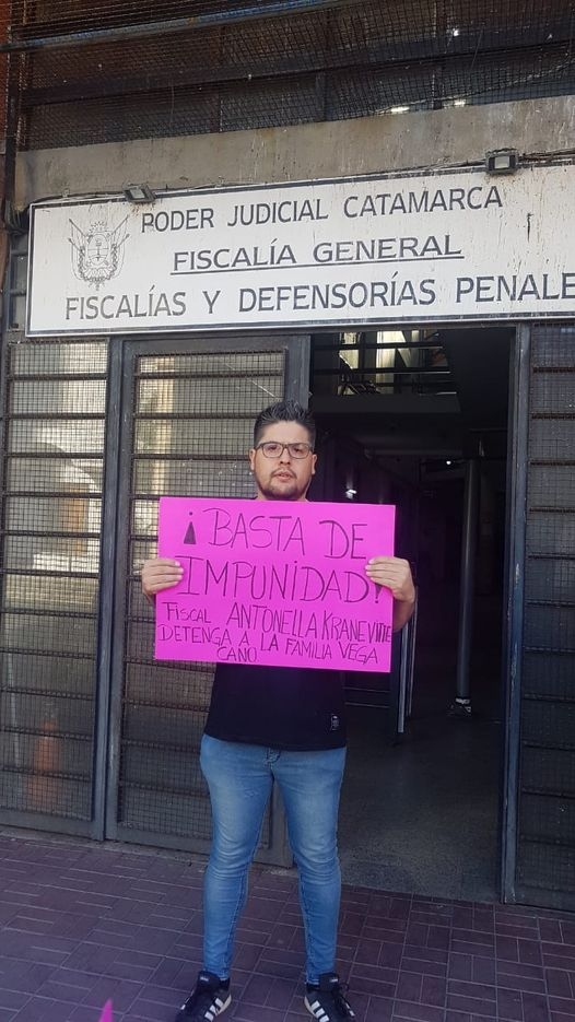 El inquilino ejecutado por los Vega Cano se encuentra reclamando en las puertas de fiscalía con pancartas solicitando que paren a los Vega Cano.