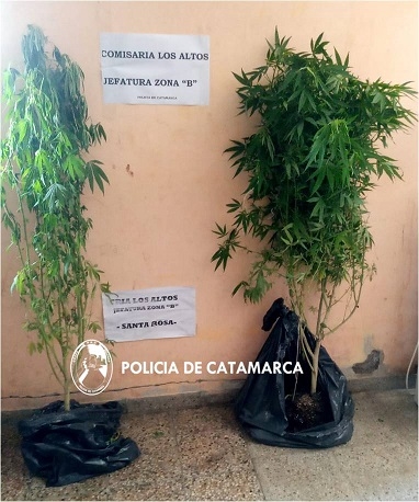 Hoy lunes, a las 9, en un registro domiciliario realizado por efectivos de Comisaría de Los Altos en un inmueble del barrio San Cayetano, observaron la existencia de dos plantas de marihuana, de aproximadamente 1,75 mts. de altura.