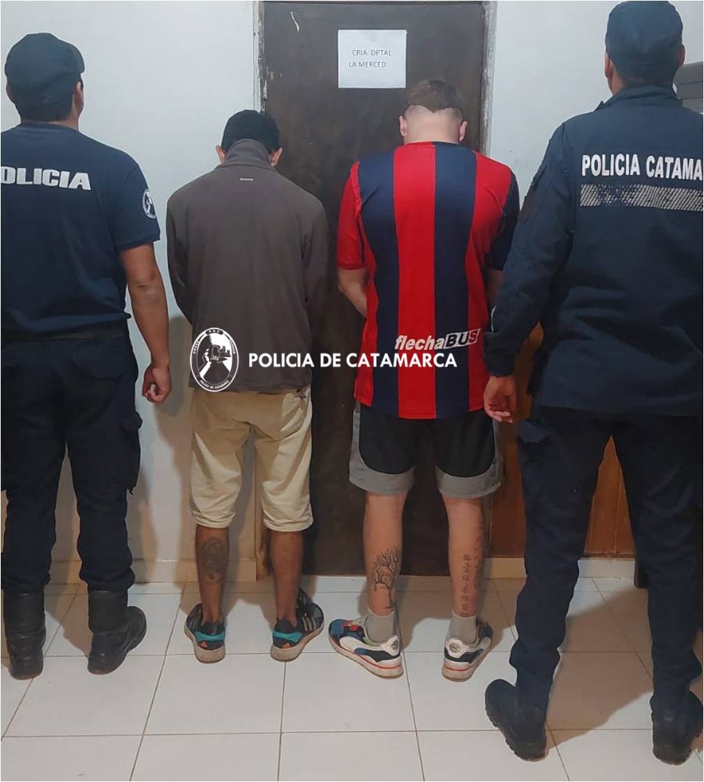 Por el hecho, estas personas fueron puestas a disposición de efectivos de la Comisaría Departamental La Merced, quienes labraron las actuaciones de rigor, tomando intervención la Fiscalía de Instrucción en turno, desde donde se indicaron las medidas a seguir.