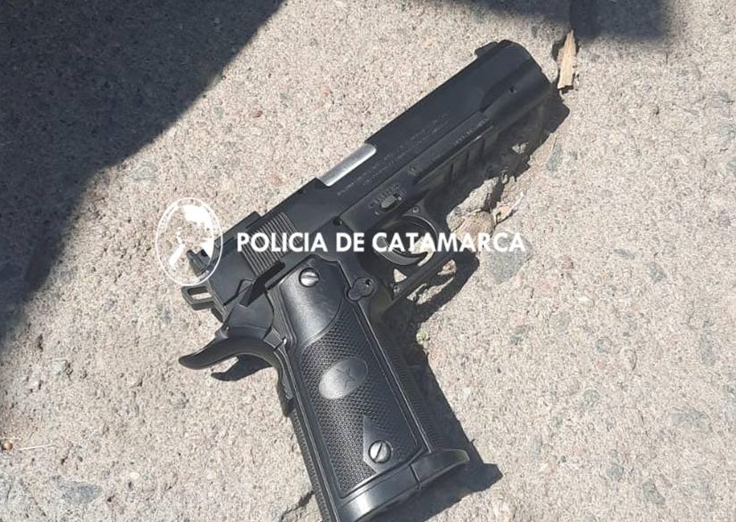 Seguidamente al realizarle un palpado superficial, los policías se percataron de que esta persona tenía entre sus prendas de vestir un arma de aire comprimido, de color negro, marca Predator, 1911, calibre 4,5, que quedó en calidad de secuestro.
