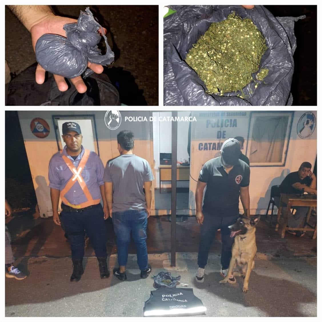 En la noche de ayer, a las 22:35, mientras efectivos de la División Canes, conjuntamente con sus pares del Grupo Antinarcóticos de Unidades Regionales (GAUR), ambos pertenecientes a la Dirección Drogas Peligrosas de la Policía de la Provincia, y personal de la Comisaría Departamental Chumbicha, realizaban operativos de control vehicular e identificación de personas en el puesto caminero ubicado en la intersección de las Rutas Nacionales N° 38 y N° 60, de esa localidad del Departamento Capayán, procedieron a controlar un colectivo de larga distancia marca Scania.