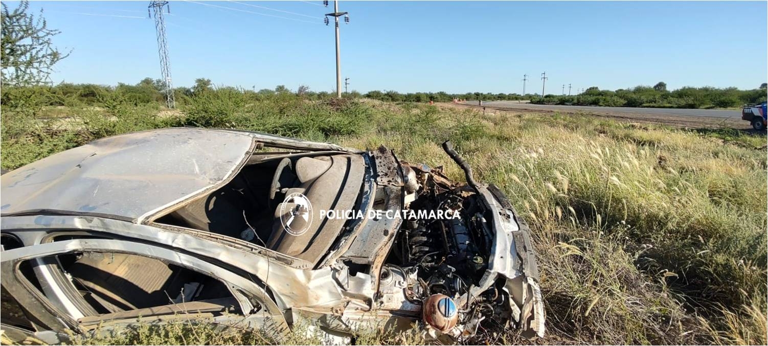 Ever Salvatore Ahumada (28), circulaba en un automóvil Volkswagen Voyage de color gris, dominio ORH-053, en compañía de Fátima Noemí Gonzales (23), y por causas que se investigan, perdió el control del rodado y terminó volcando a un costado de la banquina.