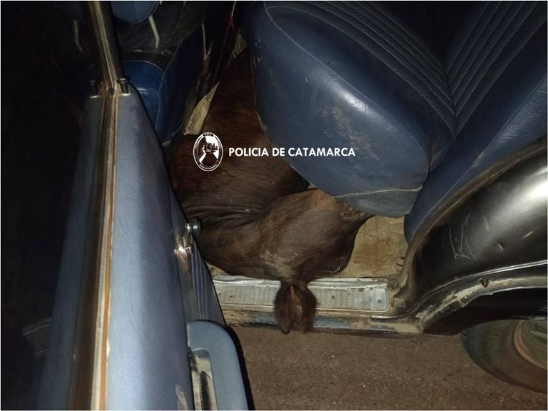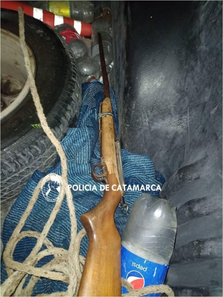 Cabe mencionar, que al realizar una inspección en el rodado, los policías observaron que debajo del asiento trasero se encontraba un animal vacuno sin vida, el cual presentaba una herida aparentemente de arma de fuego en la cabeza, y procedieron al secuestro de un (01) rifle calibre 22 y varias armas blancas.