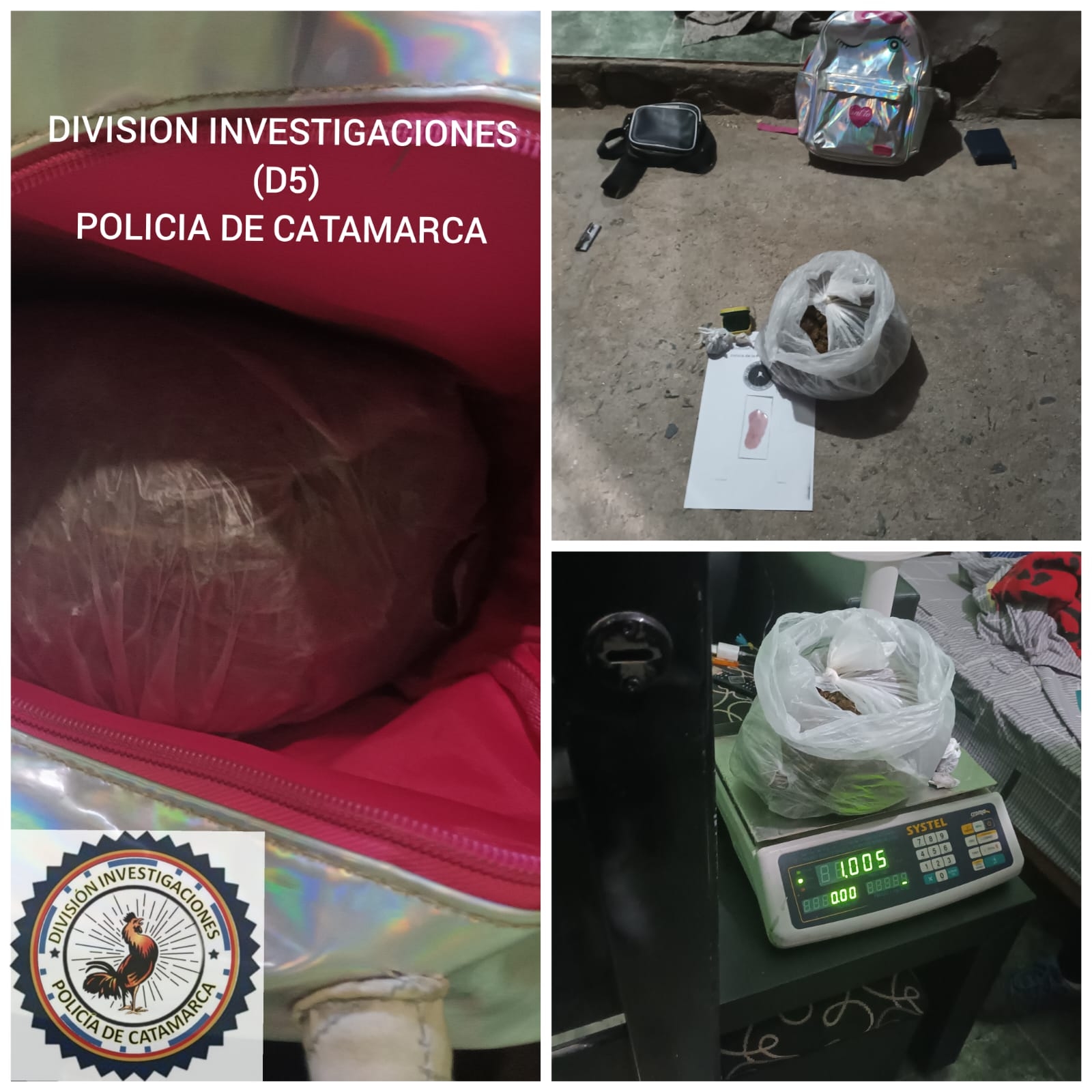 Durante la medida Judicial, los policías encontraron una sustancia tipo herbácea por lo que convocaron al lugar a personal de la Dirección Drogas Peligrosas de la Policía de la Provincia, quien tras realizar la prueba de campo, arrojó como resultado positivo Marihuana, acusando un peso total de 1 kilogramo, que fue secuestrada y puesta a disposición de la Justicia Federal.