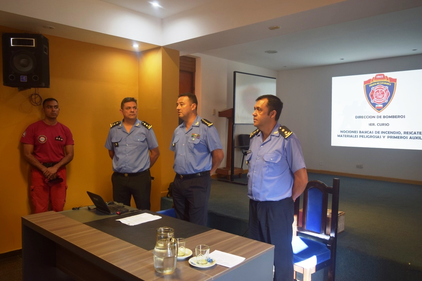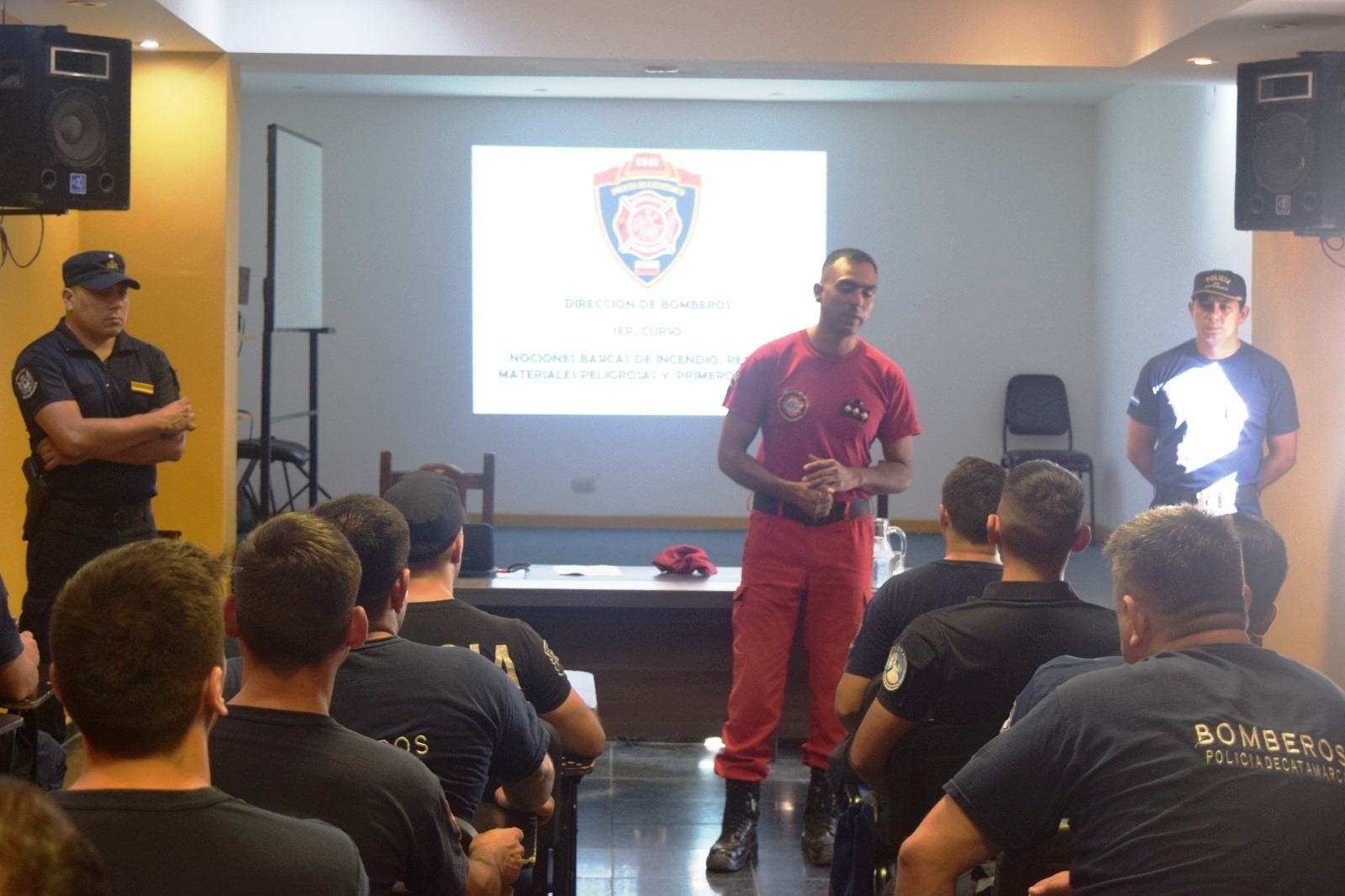 El lunes próximo pasado, en el Salón Auditórium de la Escuela Superior de Policía, el Subjefe de Policía de la Provincia, Crio. Gral. Víctor Hugo Sánchez, junto al Rector del IES Policial, Crio. Mayor Lic. Omar Gustavo Seiler y al Director de Bomberos, Crio. Mayor Diego Saúl Cerkvenih, dieron inicio a la capacitación denominada “Nociones Básicas de Incendios, Rescates, Materiales Peligrosos, Rescate Vehicular y Primeros Auxilios”.