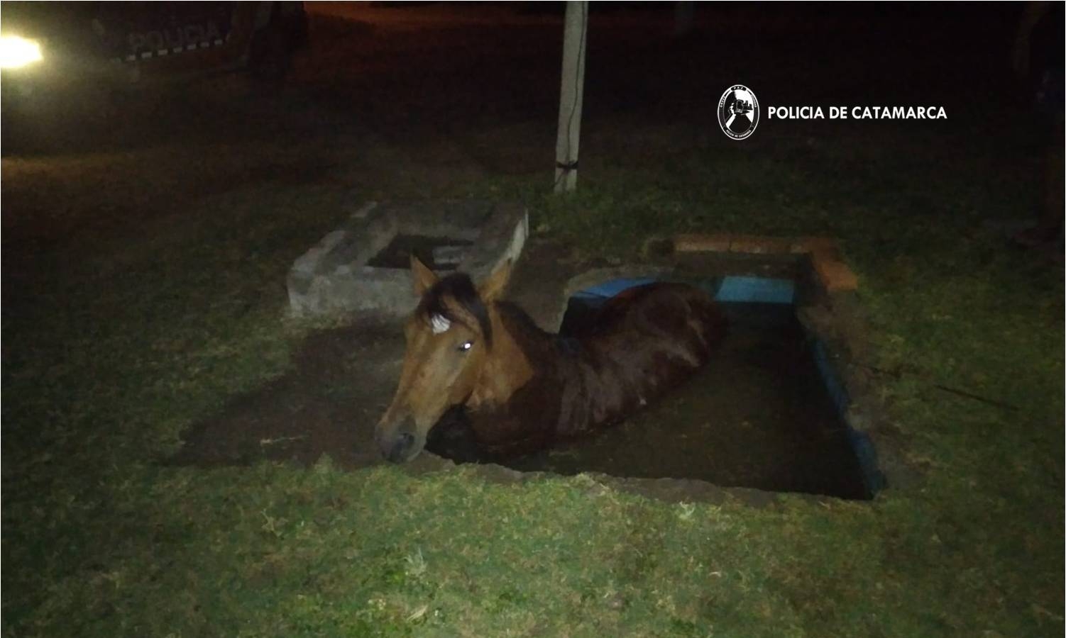 Hoy, a la 01:13, a través del Sistema de Atención de Emergencias (SAE) 911, personal de la Comisaría Nueva Coneta tomó conocimiento que en la localidad de Puesto Nuevo, Departamento Capayán, un animal equino habría caído en una cisterna.