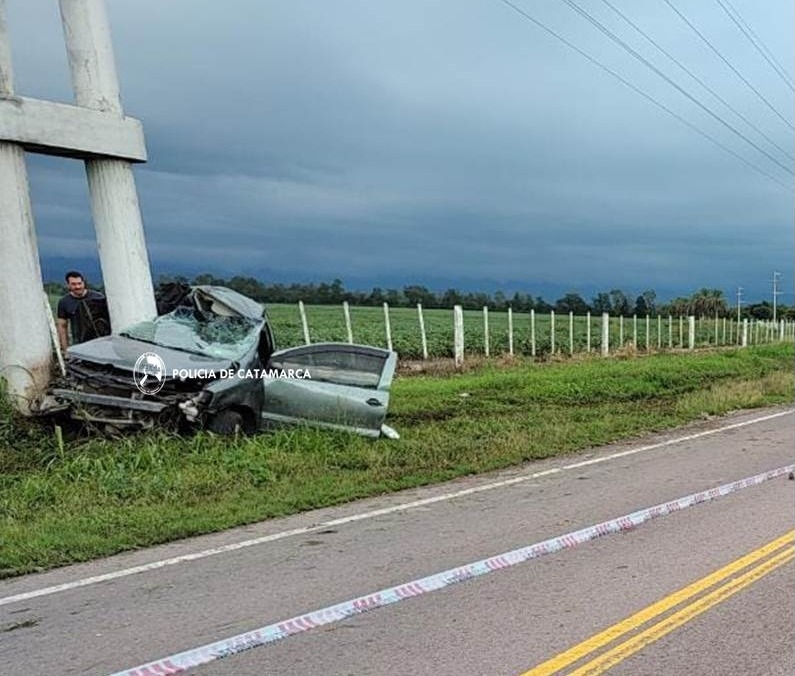 Santiago José Orieta (28), circulaba en un automóvil Volkswagen Fox, dominio JGO-030, de color gris, en compañía de Gimena Peralta (27), y por motivos que se investigan perdió el control del rodado y chocó contra un poste de cemento de alta tensión.