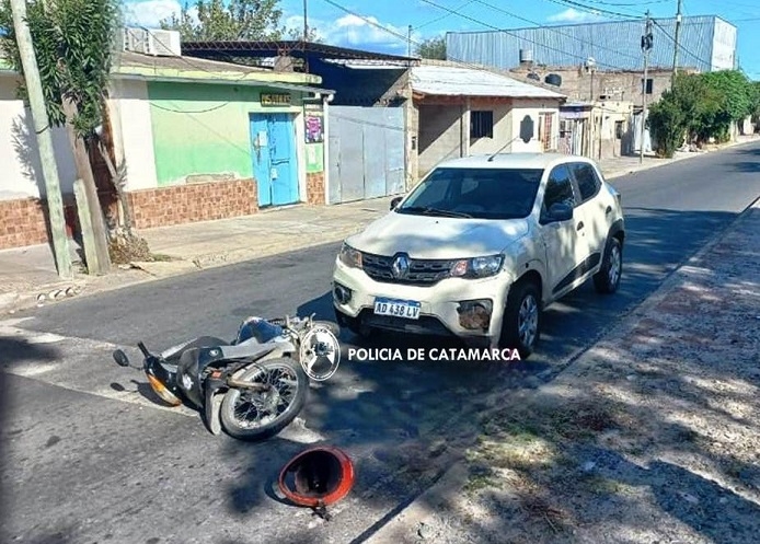 Hoy, a las 17:30, en Avenida Misiones, entre las calles Marcos Figueroa y Víctor Mauvecin, Bruno Ezequiel Martínez Armengol (30), que iba en Renault Kwid, colisionó con una Motomel Blitz negra 110 cc. conducida por Luciana Soledad del Carmen Espeche (34).