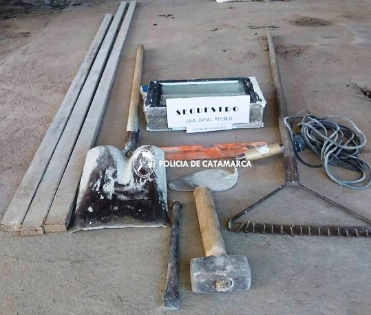 A raíz de ello, efectivos de esa seccional, bajo las directivas de la Fiscalía de la Sexta Circunscripción Judicial, materializaron cuatro registros domiciliarios en diferentes viviendas de esa Ciudad, donde secuestraron tres reglas de hierro de 3 metros aproximadamente, una maza de hierro con cabo de madera, un corta fierro, una cuchara de albañil, un alargue de 10 metros aproximadamente, de color negro, una pala ancha con cabo de madera, un rastrillo, un ventiluz de chapa con sus respectivos cristales de 50 x 25.