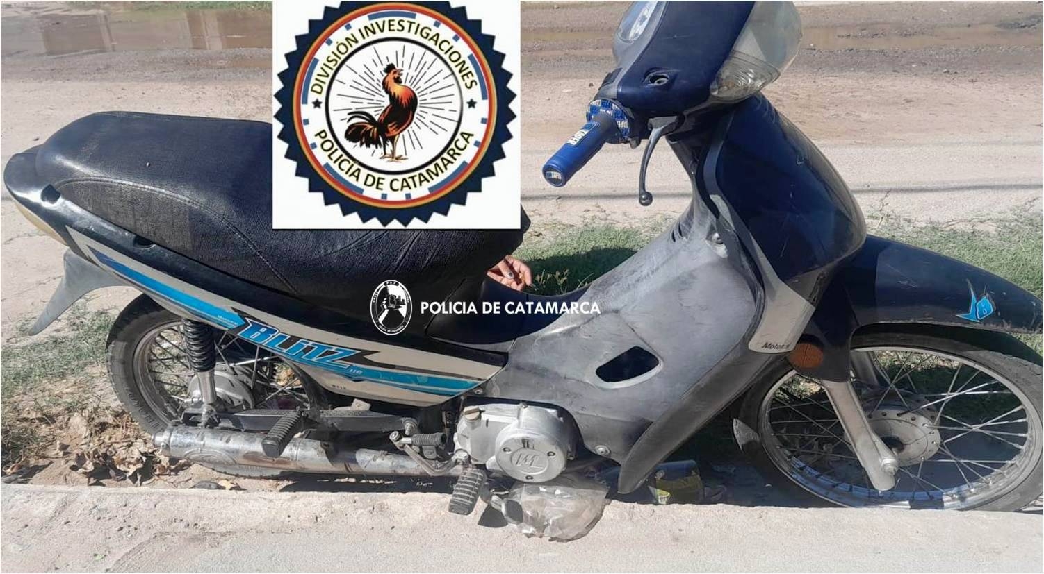 En la jornada de ayer, alertados por un llamado telefónico, efectivos de la División Investigaciones de la Policía de la Provincia se hicieron presentes en la intersección de las calles 22 de Abril y Los Jacaranda, donde observaron que una motocicleta Motomel Blitz 110 cc., de colores gris, azul y negro, estaba abandonada en la zona, en virtud de lo cual fue incautada.