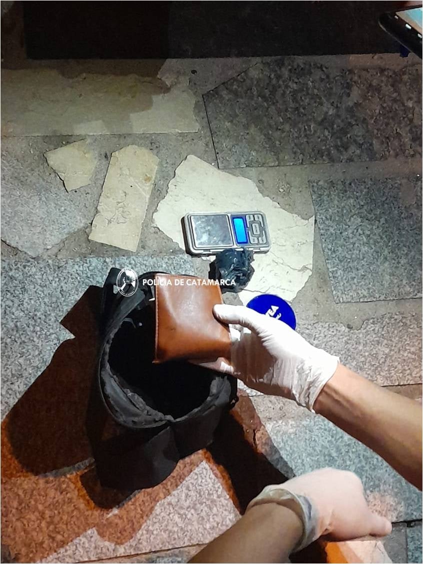 En la madrugada de hoy, a las 02:35, mientras personal del Cuerpo de Operaciones Especiales Motorizada (COEM Kappa) realizaba recorridos preventivos por la calle Rio Negro, inmediaciones a la intersección con calle Juan B. Justo, procedió a identificar a un joven de 22 años de edad, y tras realizarle la requisa correspondiente, encontraron entre sus pertenencias un envoltorio, con una sustancia herbácea en su interior y una (01) balanza tipo gramera, dos (02) teléfonos celulares y dinero en efectivo.