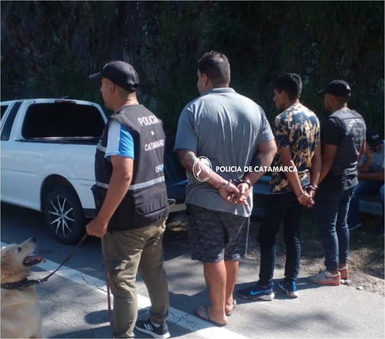 En el lugar, los policías controlaron una camioneta Volkswagen Saveiro blanca, proveniente de la Provincia de Tucumán, en la que circulaban dos hombres mayores de edad, y al realizar tareas de su especialidad, observaron que en el interior de la compuerta de la caja del rodado, estas personas llevaban oculta una sustancia herbácea que se trataría de probable Marihuana, la cual estaba envuelta en plástico, apta para preparar más de novecientas (900) dosis, que quedó en calidad de secuestro.