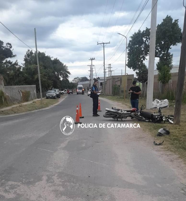 Cristian Sebastián Córdoba (40), circulaba en una motocicleta Honda CG Titán 150 cc., dominio A021KQM, en compañía de Valeria Soledad Ormeño (41), y por razones que se tratan de establecer colisionó con una Zanella 150 cc., dominio A151JVG, al mando de Maximiliano Armando Palacios (21).