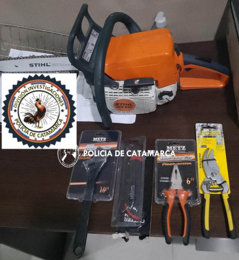 Asimismo, luego de realizar rastrillajes en un descampado ubicado en el barrio Montecristo, los investigadores encontraron una (01) motosierra marca Stihl modelo MS 210, una (01) trincheta Crossmaster, una (01) llave francesa marca Metz, una (01) pinza Metz y una (01) tijera de podar, que estarían vinculadas con el hecho denunciado, y quedaron en calidad de secuestro a disposición de la Justicia interviniente, desde donde se indicaron las medidas a seguir.
