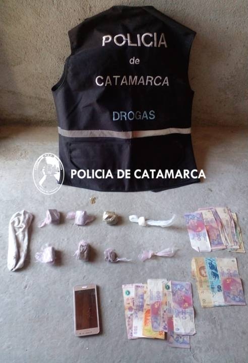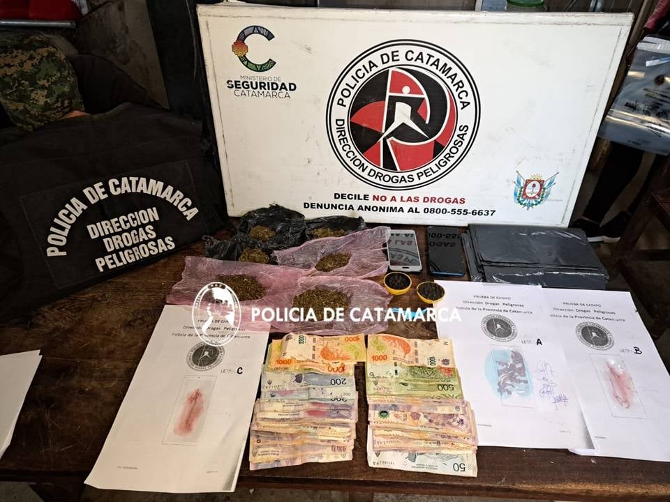 Durante las medidas Judiciales, los policías secuestraron veintitrés (23) dosis de Cocaína, 300 Gr. de Marihuana, fraccionada en dosis de 25 Gr., cuatro (04) teléfonos celulares utilizados para concretar las ventas, la suma de ciento treinta y cuatro mil quinientos pesos ($134.500) en efectivo, discriminados en billetes de baja denominación, junto a elementos relacionados con este tipo de ilícitos, como recortes de plástico y trituradores de Marihuana, que sirven para la elaboración de las dosis de la droga.