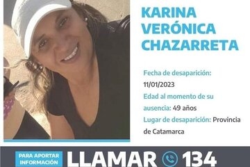 Karina Chazarreta es la mujer que está desaparecida desde el 11 de enero este de año. Ese día, entre las 6.30 y las 7 de la mañana, Karina fue vista por última vez en la zona norte de la Capital, sobre la avenida San Juan Bautista.