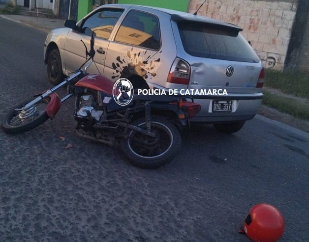Hoy, a las 08:20, en la esquina de las calles Obispo Segura y Capital Federal, Gustavo Misael Acosta (23), que circulaba en una Honda CB1 125 cc. colisionó con un Volkswagen Gol al mando de César Fernando Correa (26).
