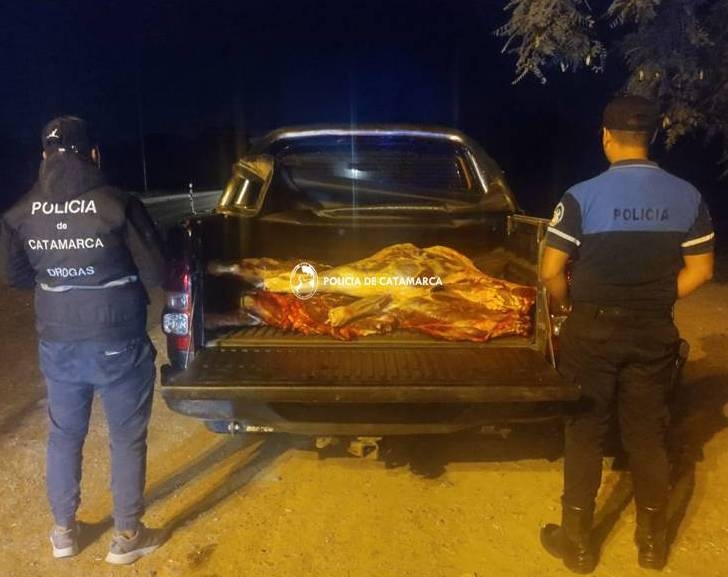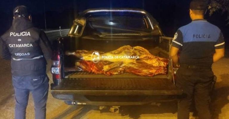 Al inspeccionar el rodado, los Policías encontraron un animal vacuno faenado, que era transportado sin la cadena de frío y medidas de salubridad correspondientes, por lo que de inmediato dieron intervención a personal de Bromatología de Valle Viejo, quien decomisó la carne y labró las actuaciones de rigor.