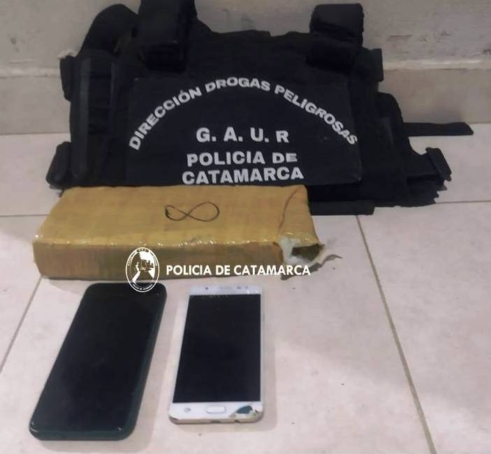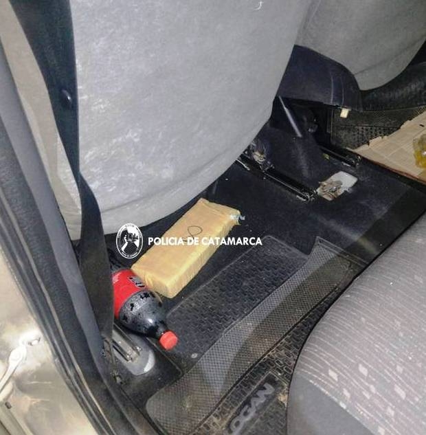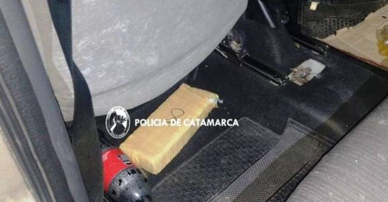 Al controlar el rodado, los uniformados observaron debajo de los asientos, un pan tipo ladrillo compactado, envuelto en cinta de embalar, por lo que de inmediato solicitaron la presencia de sus pares del Grupo Antinarcóticos de Unidades Regionales (GAUR Nº 4 Andalgalá), quienes tras realizar tareas de su especialidad, lograron determinar que se trataría de Marihuana, que arrojó un peso de 1,040 Kg., que quedó en calidad de secuestro, al igual que dos (02) teléfonos celulares y el rodado mencionado.