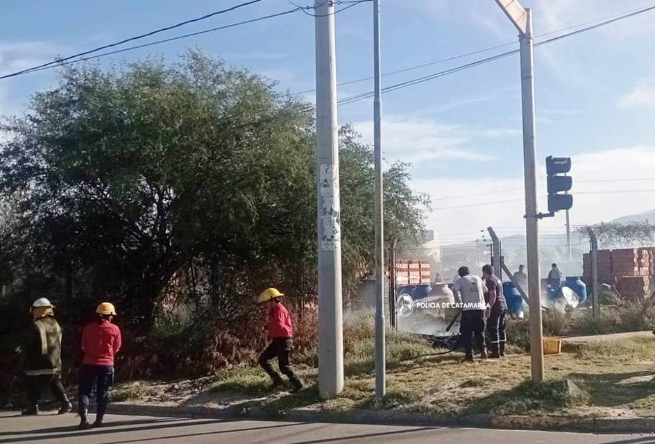 Una vez en el lugar, los policías solicitaron la presencia de personal de Bomberos Voluntarios de Valle Viejo, quien logró sofocar las llamas.