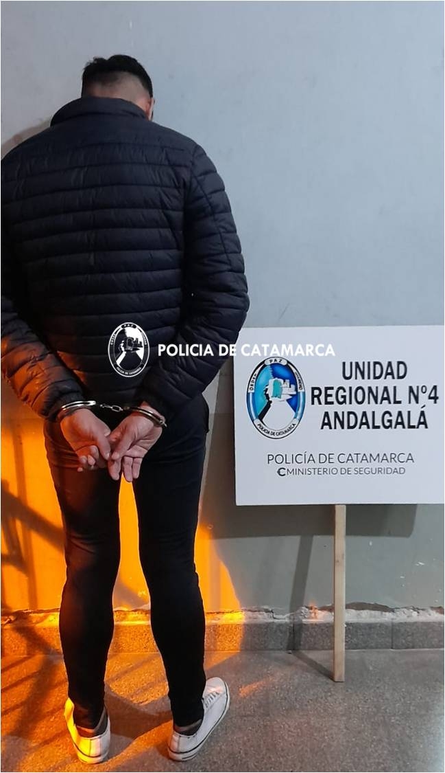 Ayer, a las 20:10, personal de la Comisaría Departamental Andalgalá procedió al arresto en averiguación del hecho de un hombre de 31 años de edad, quien fue sindicado a través de una denuncia penal radicada por su expareja, una mujer de 40 años, como el presunto autor del delito de violencia de género, en virtud de lo cual quedó alojado en la dependencia policial a disposición de la Fiscalía de la Segunda Circunscripción Judicial.