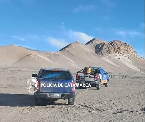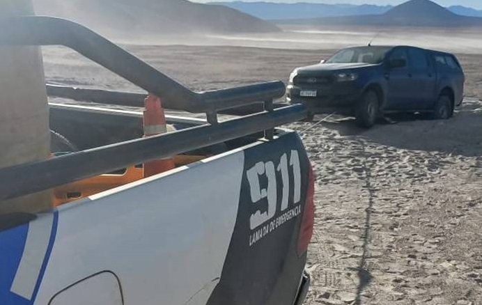 Ayer domingo, a las 16:40, por requerimiento de personal de Comisaría El Peñón, efectivos del Grupo Especial de Rescate (GER), dependiente de la Dirección Bomberos de la Policía de la Provincia se constituyeron en Campo de Piedra Pómez donde lograron rescatar una camioneta Ford Ranger 4x2 de color azul, que estaba varada en zona de médanos.