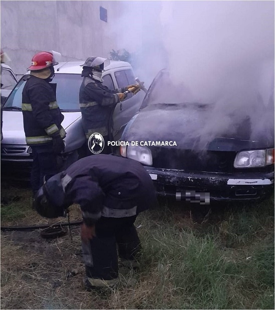 De inmediato solicitaron la colaboración de sus pares de la Dirección Bomberos de la Policía de la Provincia, quienes realizaron tareas de su especialidad y lograron sofocar las llamas que ocasionaron daños materiales totales en todos los rodados.