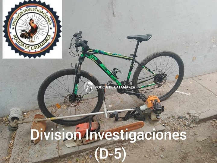 Los elementos robaron eran una moto guadaña marca Stihl 450, de color naranja, una motosierra de la misma marca y color, como así también una bicicleta marca SLP, rodado 29, de colores negro y verde, para luego darse a la fuga,